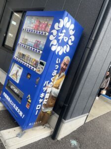 自販機の横には、迫力満点の「オヤカタくん」がドーンと登場💪